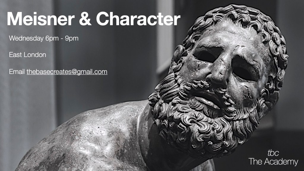 We are excited to announce that we are re-launching our Meisner classes next week. These have been running for several months now. It is a chance for actors and non-actors of all levels of experience to practice together Meisner’s repetition exercise and much else beyond. It is a great tool for unlocking one’s creative juices and becoming part of a community of artists. They run from 6pm-9pm every Wednesday in Hackney Wick. Places are very limited so email thebasecreates@gmail.com to book a place.